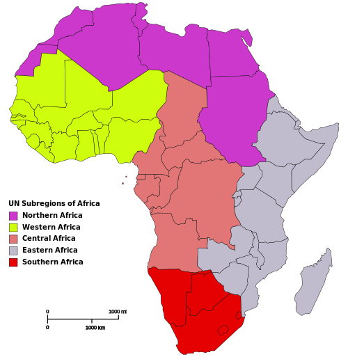Африку подразделяют на 5 регионов или на 2 больших региона (Северную Африку и Тропическую Африку).