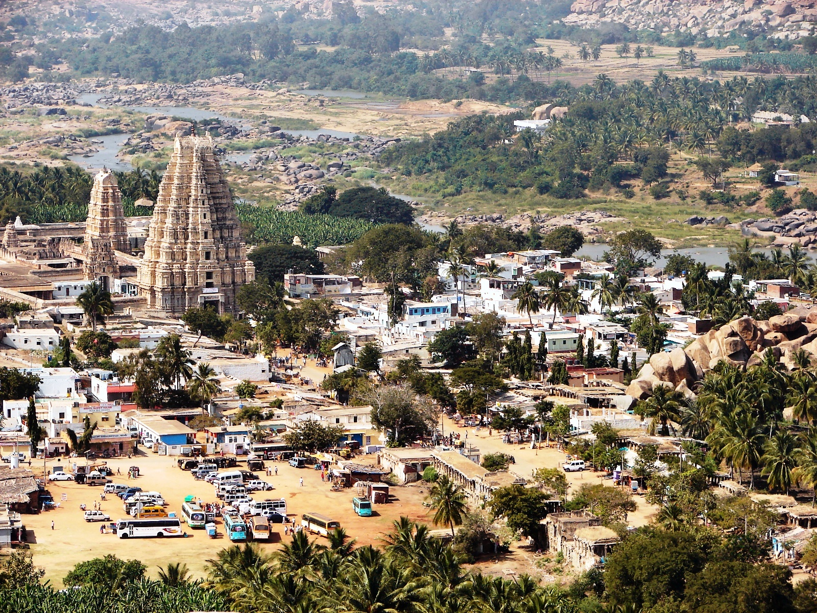 Когда-то давно (а именно с первой половины XIV по вторую половину XVI в.) на месте нынешней деревни была столица Виджаянагарской империи – богатейший город во всей Индии. После крушения империи многое, чем гордился город, было попросту разграблено, но некоторые здания всё же уцелели и сохранились до нашего времени. Таких зданий очень много – их остатки расположены на обширной территории площадью свыше 20 км2, и осмотреть все достопримечательности Хампи за один день невозможно просто физически.