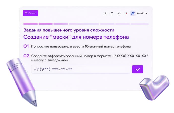 Интерактивные задания, которые помогают лучше запоминать теорию. Тесты проверяются автоматически. При ошибках платформа даёт подсказки