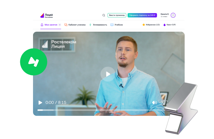 Доступ к видео, тренажерам и конспектам по предметам с 1 по 11 класс: информатика, химия, физика, английский и русский язык
