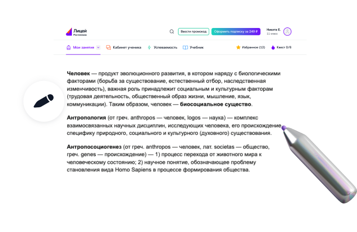 Чтобы оформить подписку, войдите в Лицей и перейдите в профиль